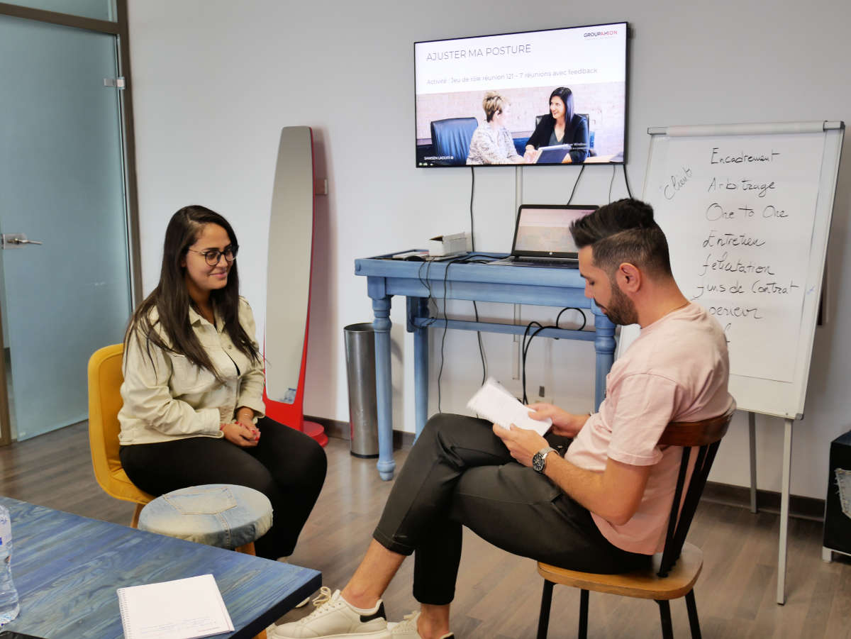 Une formation en communication sous les thèmes Savoir réussir ses entretiens de gestions et Donner des feedbacks critiques constructifs. Une formation Groupaxion dans le cadre de son cursus “Manager Coach”.